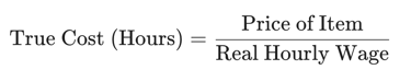 Assumes a "Real Hourly Wage" (take-home pay after taxes) of $30.00/hour.